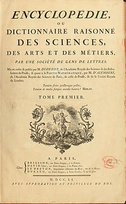 L’Encyclopédie est plus qu’un dictionnaire, c’est un ouvrage de référence qui a pour but de rassembler et diffuser tous les savoirs accumulés dans tous les domaines à un instant T et de les rendre accessibles à tous. Sa rédaction s’est étendue de 1751 à 1772. Ses dix-sept volumes texte et ses dix volumes planches (avec les illustrations) comptent environ 70000 articles. Diderot, D’Alembert, Turgot, Voltaire et Rousseau, entre autres, ont participé à leur rédaction.