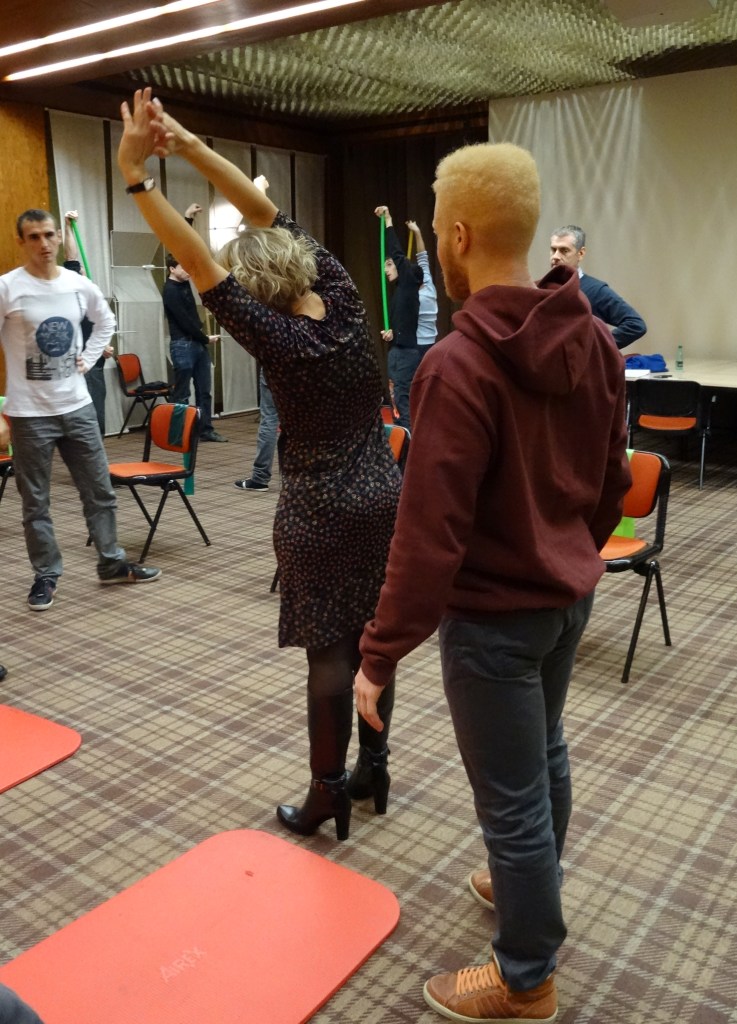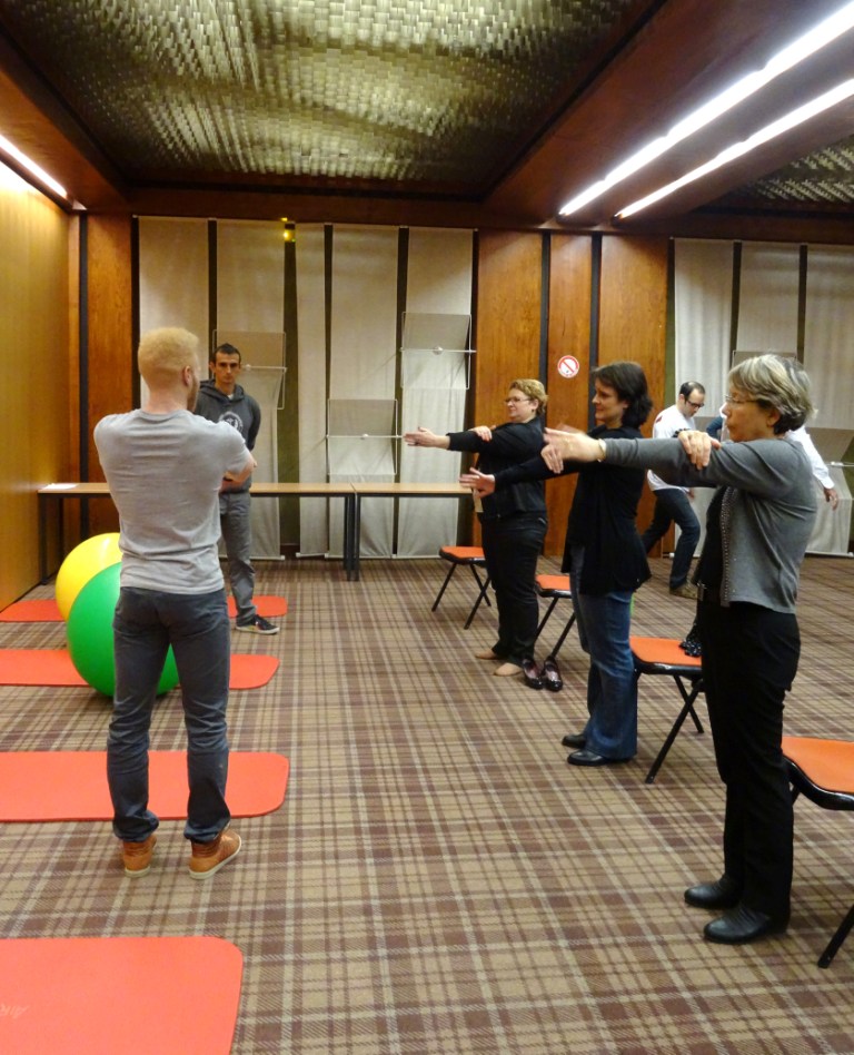 Ainsi, mardi 18 novembre 2014, les étudiants en masso-kinésithérapie se sont rendus dans les locaux de l’entreprise LEGRAND. Ils ont dispensé 30 massages et proposé 4 ateliers distincts d’étirements, à l’aide de ballons, bâtons, en position assise ou debout. Ils ont également donné de nombreux conseils aux salariés, très à l’écoute et demandeurs, destinés à limiter, voire à supprimer, les troubles musculo-squelettiques (TMS). Cette animation, reconduite désormais à fréquence régulière, connait un succès grandissant.