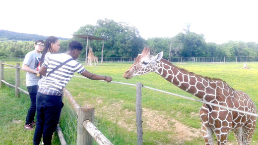 Trois stagiaires de la Plateforme Surdité du CRP se sont rendus au parc-zoo du Reynou, samedi 20 mai, accompagnés par Laurence, animatrice socio-éducative. Francisca, Reno et Quentin ont observé et approché les nombreux animaux hébergés dans ce parc-zoo situé sur la commune du Vigen, près de Limoges. Ils ont découvert une grande diversité d’espèces animales provenant d’Afrique, d’Amérique, d’Asie, d’Australie et d’Europe. Ils ont également pris plaisir à flâner dans les allées de ce parc admirablement végétalisé, à respirer les senteurs des fleurs et arbustes, à contempler des arbres pour certains plusieurs fois centenaires.