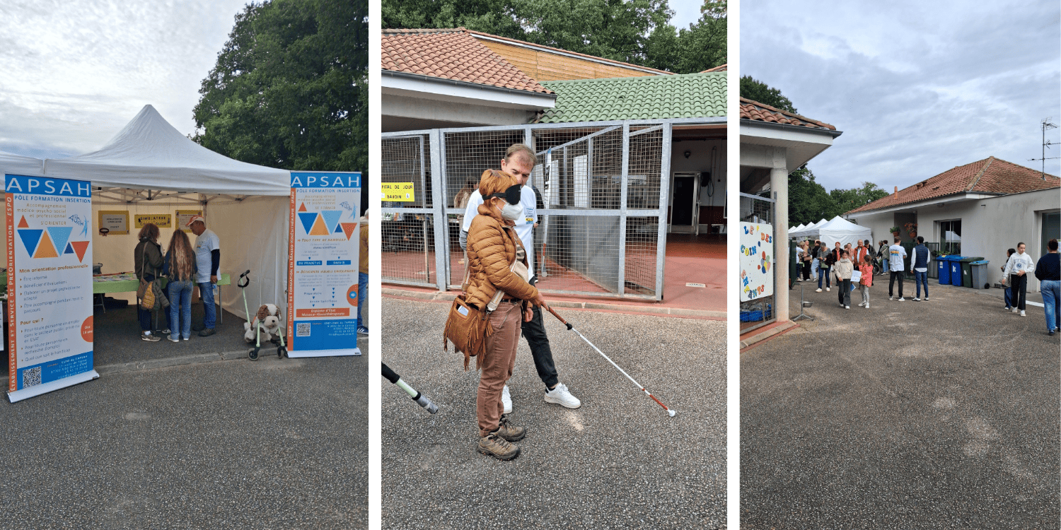 Le Pôle Formation / Insertion de l'APSAH disposait d'un stand où les visiteurs ont pu découvrir l'ensemble de ses prestations, avec un focus particulier sur les formations et dispositifs destinés aux personnes déficientes visuelles, comme le Plateau Autonomie pour Déficients Visuels ou la formation de masseur-kinésithérapeute. Un atelier était également proposé, permettant aux participants de se déplacer les yeux bandés, à l'aide d'une canne ou d'un simulateur de chien guide. Le stand et l'atelier étaient animés par Yaniss, instructeur pour l'autonomie des personnes déficientes visuelles.