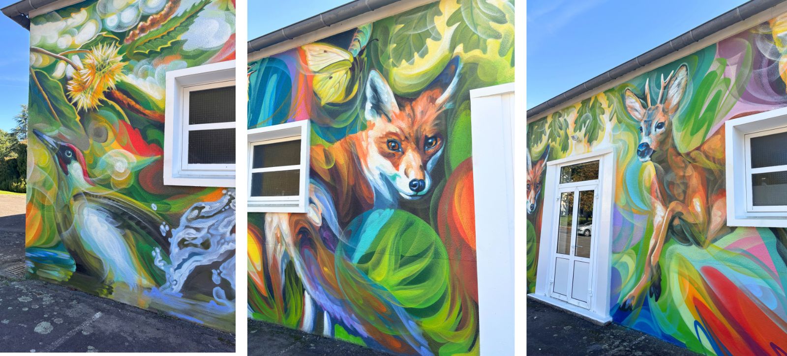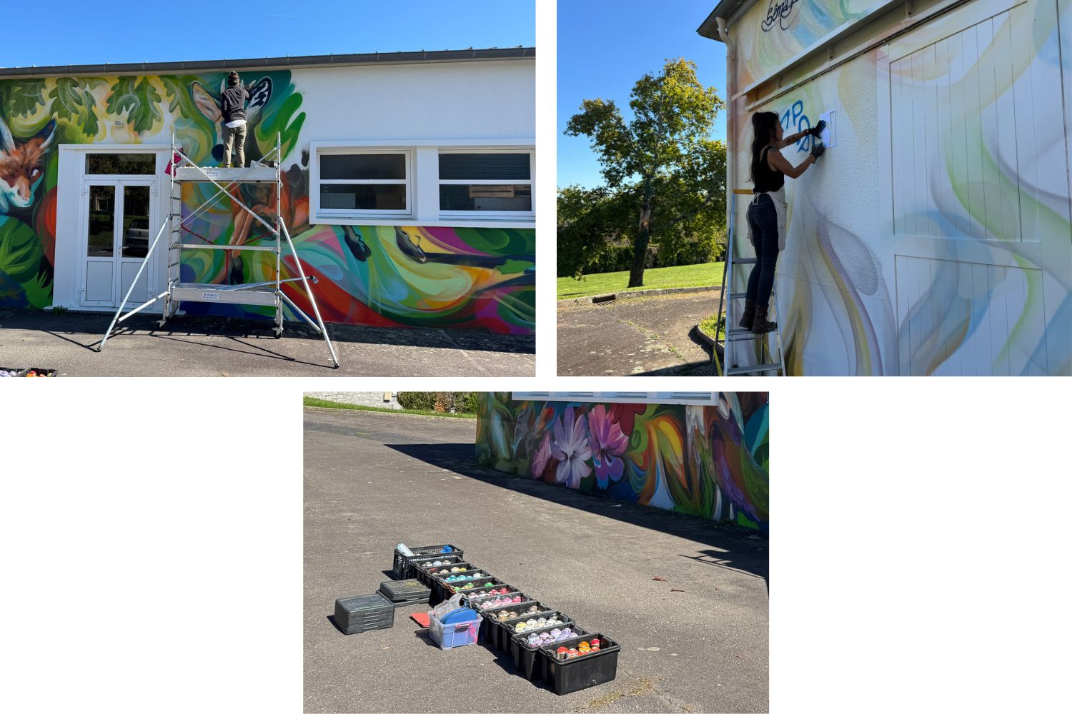 Cette fresque, réalisée sur trois côtés du bâtiment, est le fruit d’un travail collaboratif entre l’artiste et les usagers de la formation horticole et du dispositif Transition Jeunes. Ces derniers ont pris part au projet dès le début. Ils ont participé aux réunions de réflexion, exprimé leurs envies, partagé leurs idées et choisi les éléments qu’ils souhaitaient voir représentés. Toutes ces idées ont été intégrées et matérialisées sur la fresque par l’artiste, donnant naissance à une œuvre représentative de leur univers.