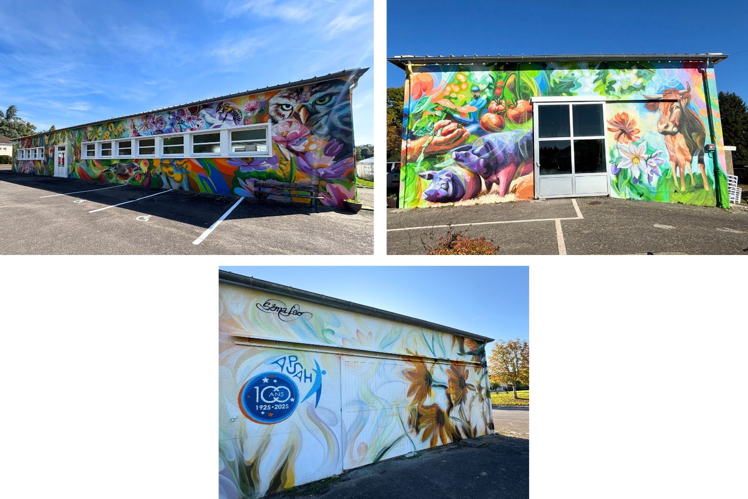 Dans le cadre des 100 ans de l’APSAH, une fresque murale a été réalisée sur le bâtiment de la formation horticole de l’ESRP par l’artiste peintre Sêma LAO. Spécialiste des bombes aérosols, elle a employé cette technique pour créer l’ensemble de l’œuvre. Elle a travaillé plusieurs mois sur ce projet, permettant aux usagers et salariés de l’observer à l’œuvre en passant devant le bâtiment.