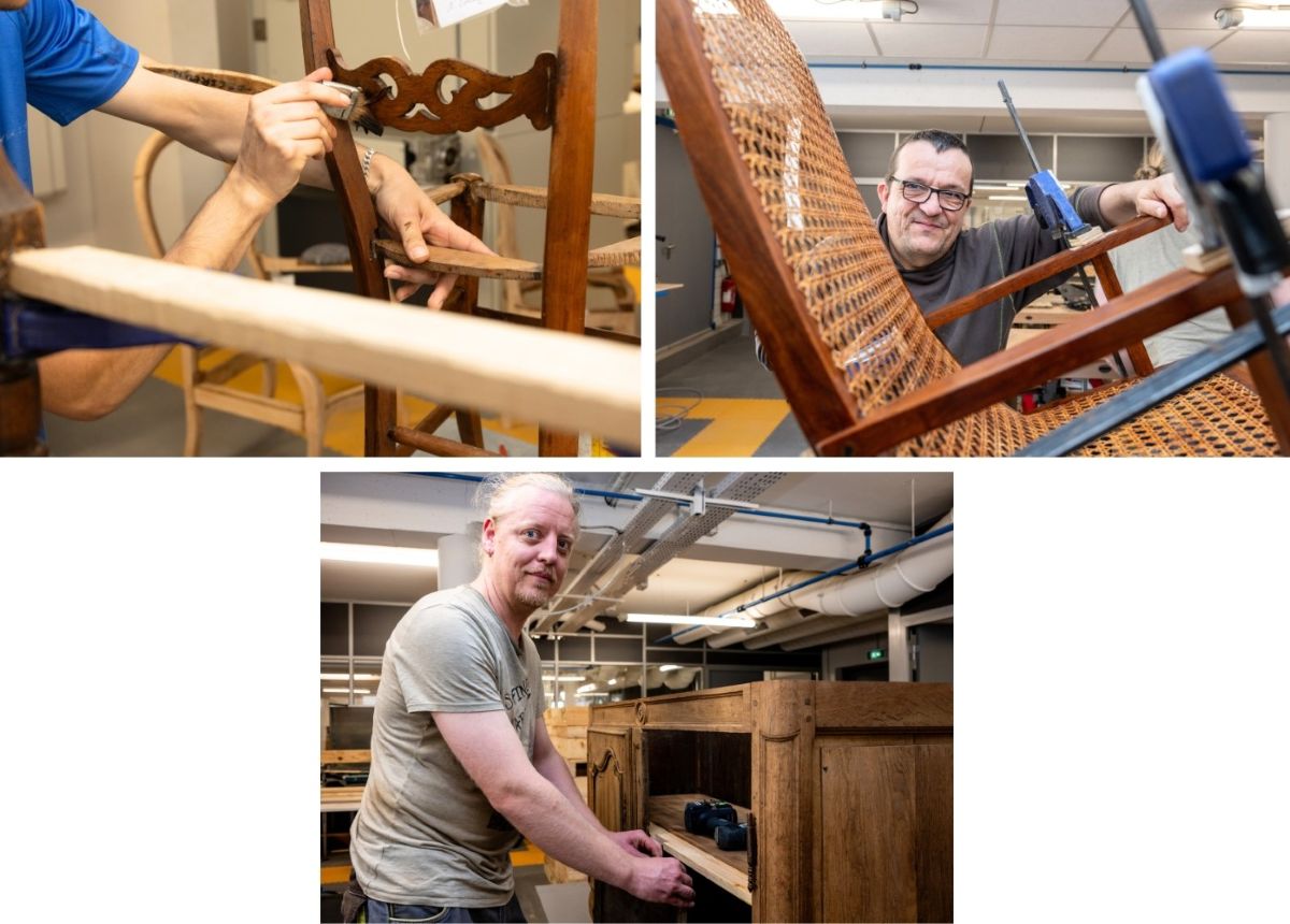 Parmi les réalisations de l’atelier figurent notamment la restauration de chaises et de meubles anciens, afin de leur redonner leur lustre d’antan ou de leur offrir une allure plus contemporaine.