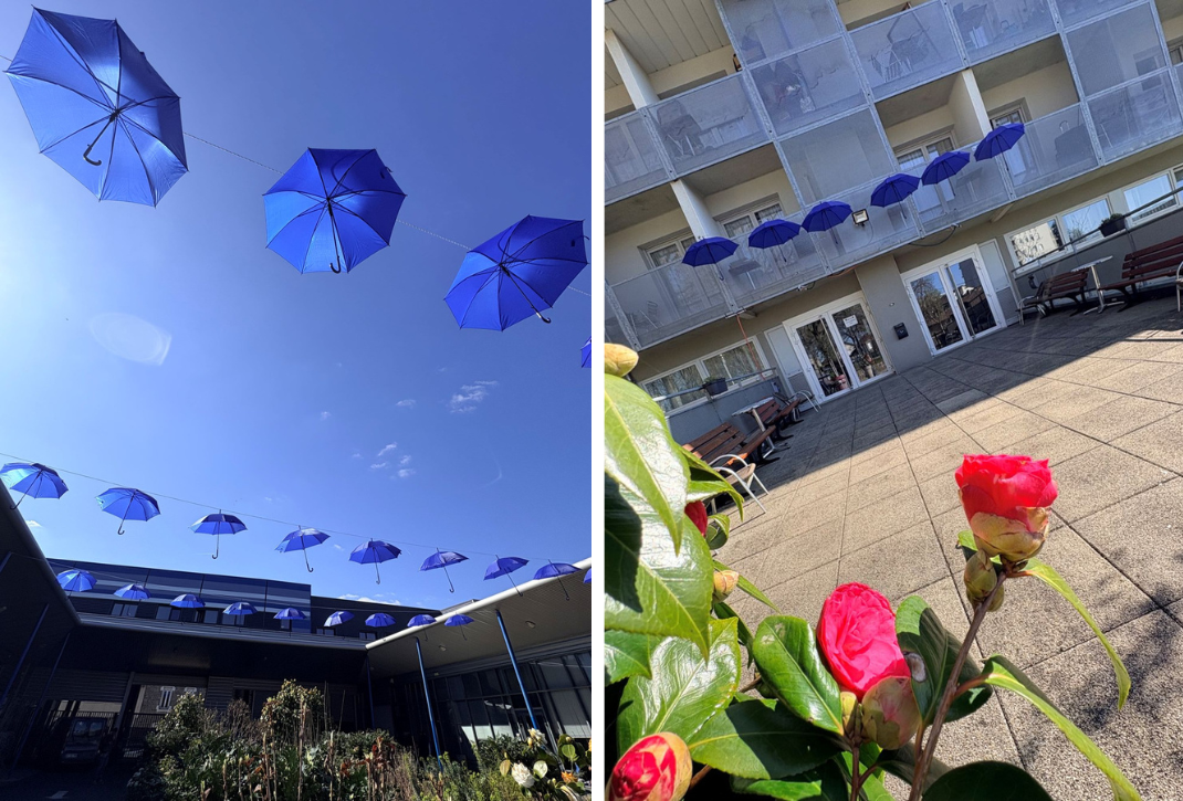 Du patio de l’ESAT jusqu’à l’entrée de l’EANM et du SAVS, les parapluies bleus survolent les structures et donnent le coup d’envoi d’un mois consacré à la sensibilisation et à la prévention du cancer colorectal.