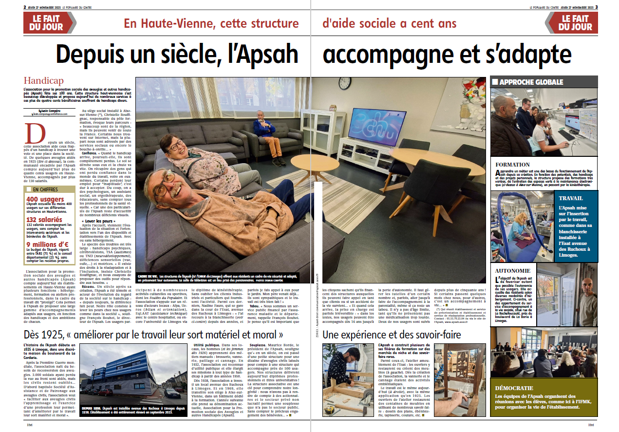 - Une activité professionnelle valorisante et variée, à temps plein ou à temps partiel, encadrée par des moniteurs d’atelier.